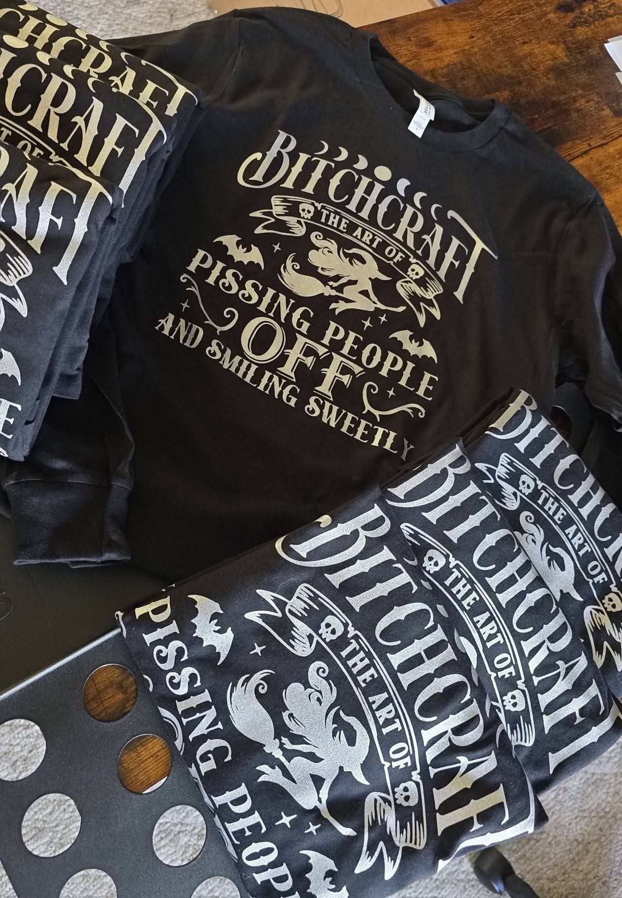 Smile sweetly while flashing this metallic ink graphic! Pressed on a Bella black longsleeve.